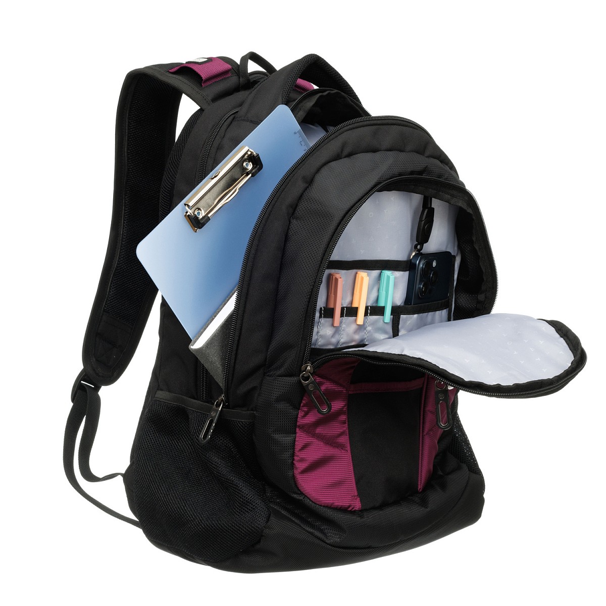 Рюкзак TORBER XPLOR с отделением для ноутбука 15", чёрный/бордовый, полиэстер 600D, 35x20x47 см, 33л T2371B