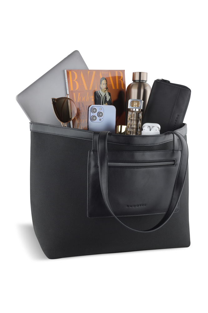 Сумка-тоут женская большая BUGATTI Elena, черная, канвас, полиуретан, 58 x 22 x 31,5 см 49598001