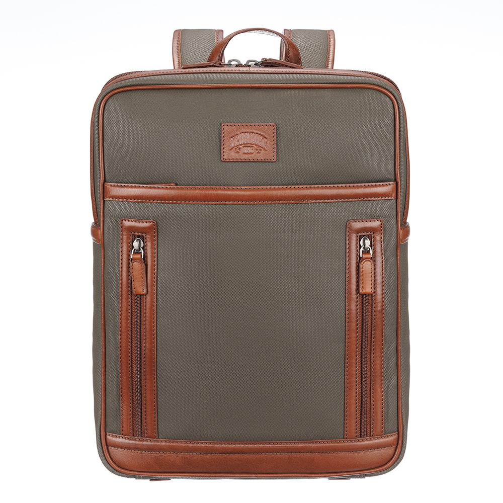 Рюкзак KLONDIKE "URBAN", натуральная кожа/канвас, оливковый/коричневый цвет, 30 х 40 х 11 см KD1406-02