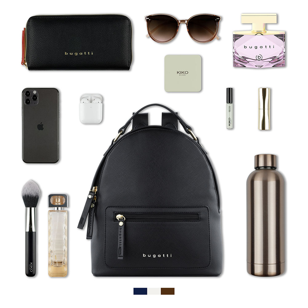 Рюкзак женский BUGATTI Ella, черный, полиуретан, 24х11,5х28 см 496630S01