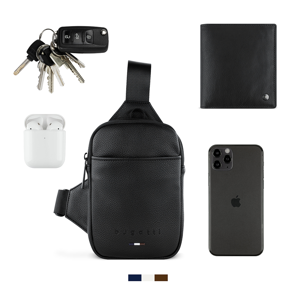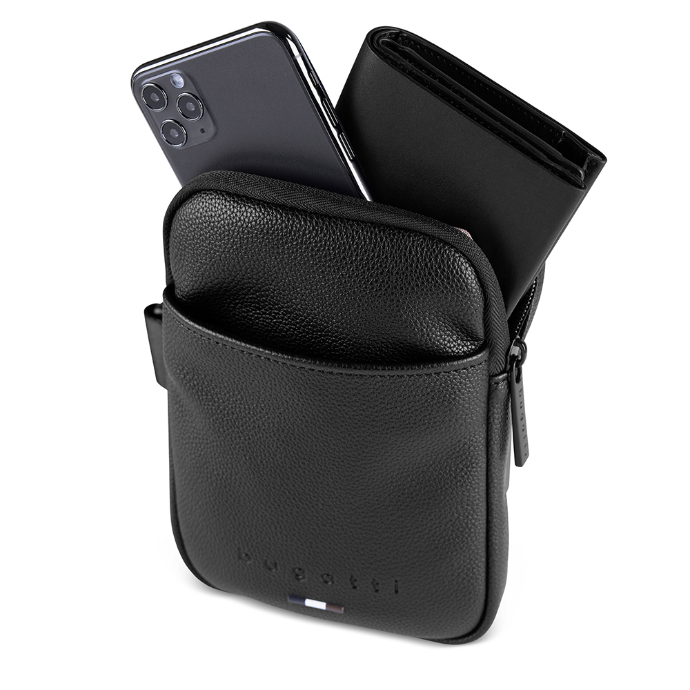 Сумка кросс-боди мужская BUGATTI RICO, черная, полиуретан, 15х3х20 см 49471001