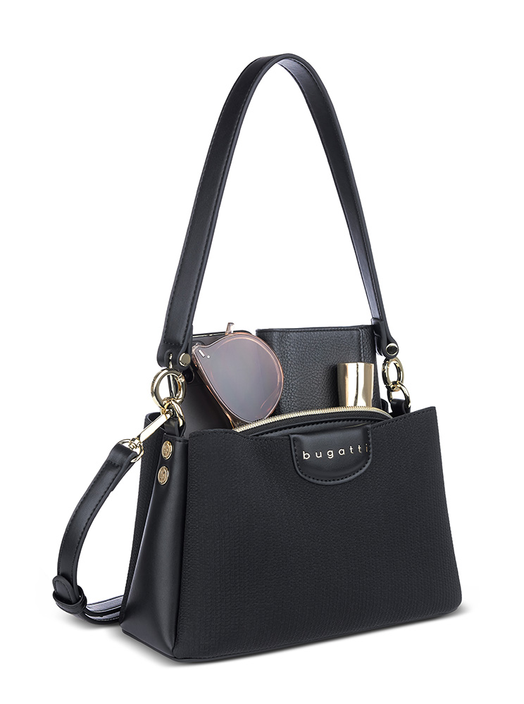 Сумка женская наплечная BUGATTI Leah, черная, полиуретан, 23х9х14,5 см 49605201