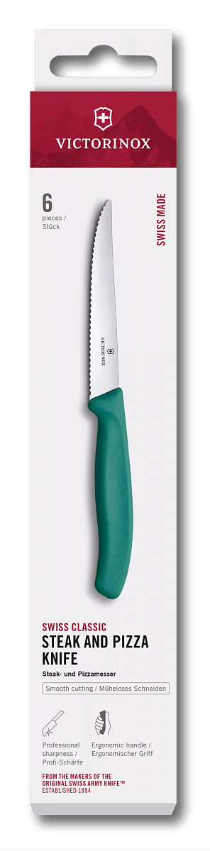 Независимо от вида блюд, поданных к столу, эти ножи станут идеальными приборами – они не только красиво выглядят, но и здорово работают. Компактный набор из шести ножей для стейка из коллекции классических швейцарских ножей идеально подойдет для сервировки стола для гостей. У каждого из шести приборов очень острое лезвие с зазубренным краем и ручка удобной эргономичной формы. Просто накройте стол и наслаждайтесь!